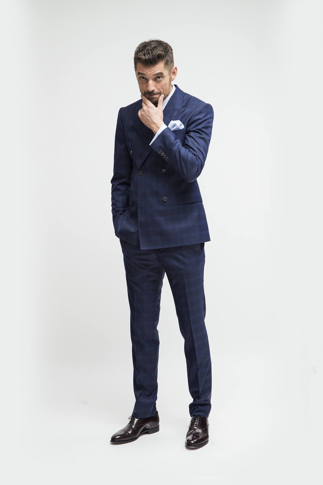 Het model AP31 staat afgebeeld met een overslag model in de kleur blauw met een lichtblauw ruitmotief in een wollen uitvoering. Maar dit is slechts een voorbeeld uit de vele mogelijkheden. Binnen ons maatwerk systeem zijn er binnen deze serie nog vele kleur en dessin varianten in dit type stof.