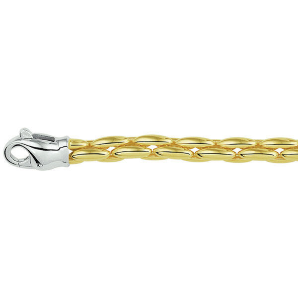 Dit fantasie Cardano collier met referentie nummer GGCO003 is in 14 karaat geelgoud uitgevoerd. Een stijlvol fijn geschakeld collier a 6,5 mm. in een lengte van 45 cm. die stijlvol rond de hals valt. Afgewerkt met een fraai vormgegeven witgouden karabijn haak slot die je als detail ook aan de zij- of voorkant kan dragen.