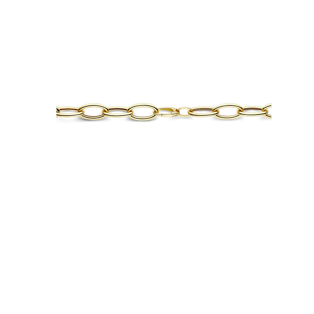 Dit fantasie paperclip collier met referentie nummer GGCO004 is in 14 karaat geelgoud uitgevoerd. Een stijlvol fijn opengewerkt geschakeld collier uit ronde buis vervaardigd a 12,5 mm. in een lengte van 45 cm. die stijlvol rond de hals valt. Afgewerkt met een fijne geelgouden karabijn haak slot, zodat de lijn in schakels niet wordt verstoord.