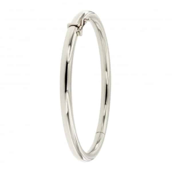 Deze slavenarmband GGZSA045 in 14 karaat glanzend witgoud is het ultieme sieraad om te combineren of zelfstandig te dragen. Deze klassieke ronde holle uitvoering uit soliede plaat dikte in 5 millimeter breedte is uitgevoerd met een scharnier en is klaar voor dagelijks gebruik. Eenvoudig in de combinatie met andere sieraden vanwege het tijdloze design. Combineer deze met een tennisarmband voor een nog luxere uitstraling.