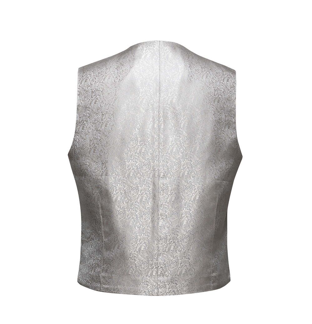 Dit GL0003 brons zilver kleurig trouw gilet voor heren – mannen is bewerkt met een ceremonieel patroon voor een feestelijke uitstraling. Speciaal om in te trouwen en voor de feestdagen. Uitgevoerd met een V-hals, twee zakken en vijf knopen die voorzien zijn van dezelfde stof. De rug partij is van dezelfde stof voorzien, zodat je deze altijd met je bestaande pak kunt combineren.