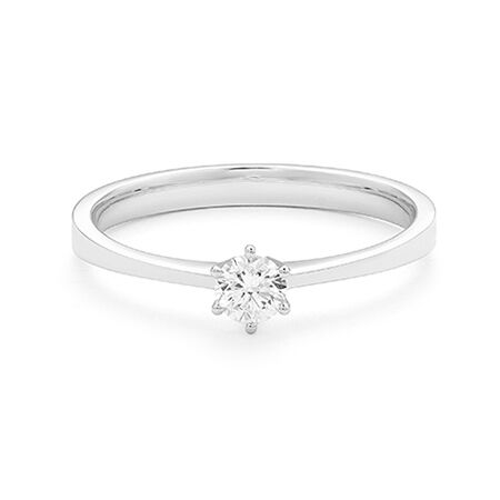 Deze platina verlovingsring valt onder de solitaire ringen groep en komt uit de serie “Princess”. Dit model is uitgevoerd met een 0,30 ct. briljant geslepen diamant. En is het meest favoriete ring model onder de dames. De zes poot chaton zetting heeft namelijk iets weg van een denkbeeldig kroontje.