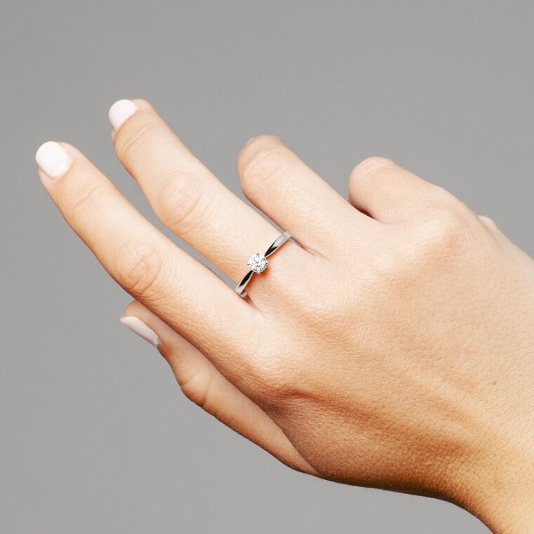 Daarnaast zorgt de vier poot chaton zetting voor een strakkere vormgeving van de rond geslepen diamant.