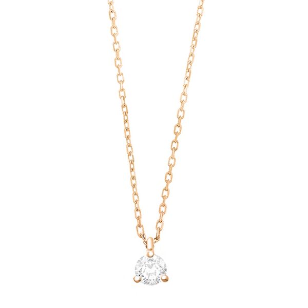 Deze RGC0017E18 model Triat roodgouden ketting met diamanten hanger is uitgevoerd in 18 karaat goud en behoort tot de solitaire familie. Hierin vind u een 0,15 caraat briljant geslepen diamant, welke is geplaatst in drie poot chaton zetting. Hierdoor kan er veel licht inval in de steen plaatsvinden, waardoor de diamant mooi schittert. Dit noemen we briljantie.