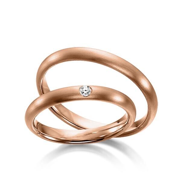 Deze ringen, model TR0504 zijn in het wit uitgevoerd van het merk Sickinger. De ring breedte is 3 millimeter en ze zijn fijn mat bewerkt. De damesring is voorzien van 1 briljant geslepen diamanten van 0,04 ct. Deze is geplaatst in een ronde ingewreven zetting. Maar de getoonde trouwringen zijn voorbeelden.