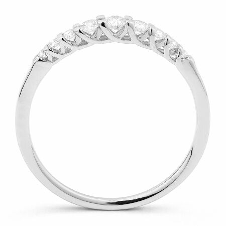 Het model Class is de klassieker onder de alliance ringen. Vervaardigd en hoogwaardig afgewerkt in 18 karaat witgoud. Waarbij dit model met referentie WGAL009E18 is bezet met 9 in maat oplopende briljant geslepen diamant grote met een totaal diamant gewicht van 0,25 ct.
