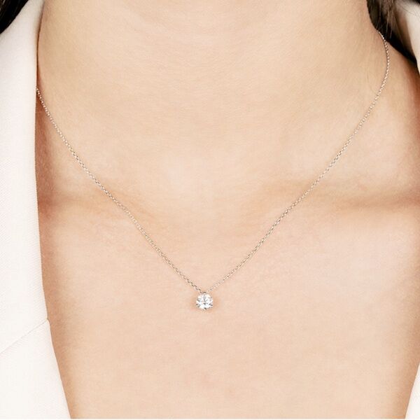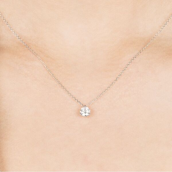 Model Triat WGC0008E18 witgouden ketting met diamanten hanger is uitgevoerd in 18 karaat goud en behoort tot de solitaire familie. Hierin vind u een 0,40 caraat briljant geslepen diamant, welke is geplaatst in drie poot chaton zetting. Hierdoor kan er veel licht inval in de steen plaatsvinden, waardoor de diamant mooi schittert. Dit noemen we briljantie.