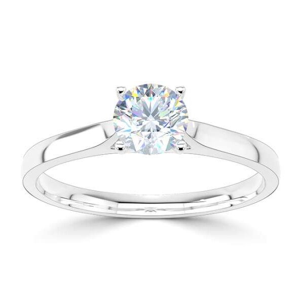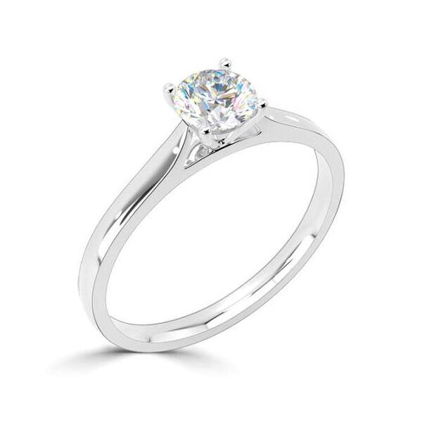 Deze prachtige diamanten solitaire ring wordt ook vaak als verlovingsring of trouwring gedragen. Vervaardigd in 14 karaat witgoud en uitgevoerd met een 0,50 ct. diamant in een witgouden zetting. De diamant is geslepen in een briljant slijpvorm die in een vier poot chaton zetting triomfantelijk boven de ring ligt. En dit zorgt voor een vorstelijk en rijk tijdloos design, dat zich eenvoudig met andere sieraden laat combineren.