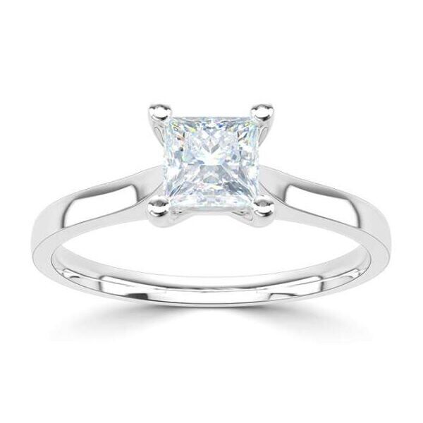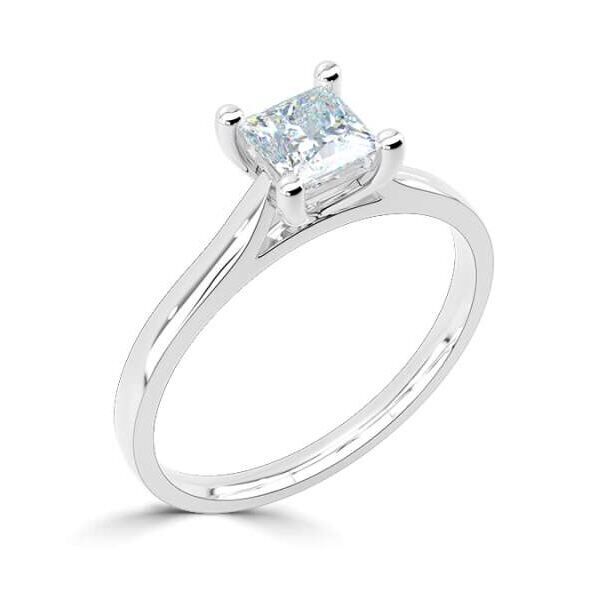Deze prachtige diamanten solitaire ring wordt ook vaak als verlovingsring of trouwring gedragen. Vervaardigd in 14 karaat witgoud en uitgevoerd met een 0,50 ct. diamant in een witgouden zetting. De diamant is geslepen in een princess slijpvorm die in een vier poot chaton zetting triomfantelijk boven de ring ligt. En dit zorgt voor een vorstelijk en rijk tijdloos design, dat zich eenvoudig met andere sieraden laat combineren.