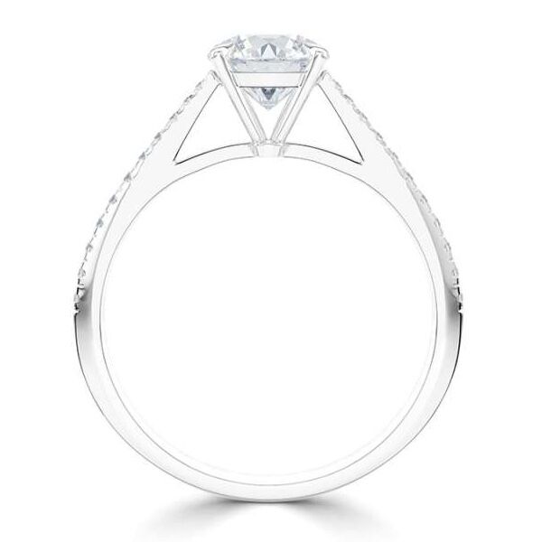 - Diamant gewicht : 0,50 ( 5 mm. ) + 0,18 ct. ( 22 x 0,9 – 1,3 mm ). – Tevens leverbaar vanaf een totaal diamant gewicht van 0,51 ct. tot aan 2,18 caraat.